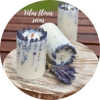 – Velas en moldes con flores secas
